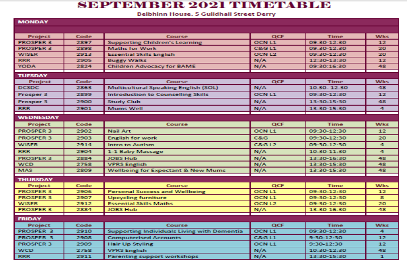 September 21 Timetable