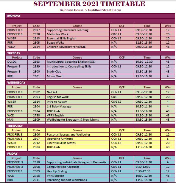 September 21 Timetable